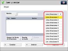 Pulse la lista desplegable → seleccione una de las listas de direcciones en Lista direcc. 1 a 10.