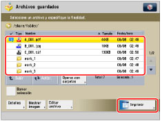 Puede seleccionar e imprimir a la vez un máximo de seis archivos en la misma carpeta. Sin embargo, no es posible seleccionar al mismo tiempo archivos con distintos formatos de archivo.