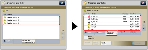Seleccione la ubicación de almacenamiento que desee → seleccione el nivel de carpeta adecuado → pulse [Operac.con carpetas].