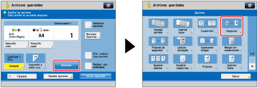 Si utiliza el modo Desplazar, es posible que la imagen del original se corte parcialmente en la impresión, según el tamaño del archivo seleccionado, el tamaño del papel de impresión y el grado de desplazamiento especificado.