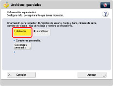 Para establecer texto personalizado, pulse [Caracteres personaliz.] → introduzca el texto → pulse [Aceptar].