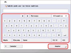 Para conocer las instrucciones acerca de la introducción de caracteres, consulte "Introducir caracteres desde la pantalla táctil".