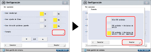 Seleccione [Sólo CSS estándar], [CSS estándar + Atributos de estilo] o [CSS estándar + Atributos de estilo + CSS ext. importado].