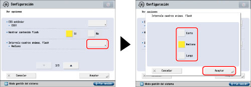 Si [Intervalo cuadros animac. Flash] se establece en 'Corto', puede disminuir la velocidad de otras operaciones, como imprimir.