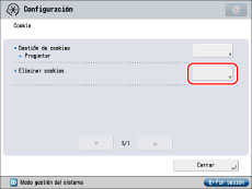 La opción prefijada para [Gestión de cookies] es 'Aceptar'.