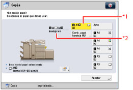 Puede guardar tipos de papel que no aparecen en la lista de configuración detallada en <Cambiar papel de bandeja multiuso: Tipo de papel>. Para más información acerca de guardar el tipo de papel, consulte "Guardar/editar tipos de papel personalizados".