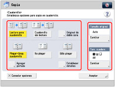Los modos Grapar cuadernillo y Cuadernillo dividido sólo se pueden establecer si está instalada Unidad de Acabado de Cuadernillos P1.