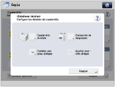Si utiliza [Auto] para el modo Corrección de desplazamiento con el modo Copia en cadena, será necesario establecer con antelación la misma corrección de desplazamiento tanto en este equipo como en la impresora para copia en cadena. Si no establece la misma corrección de desplazamiento para ambos equipos, se aplicarán los valores de corrección de desplazamiento establecidos en cada equipo.