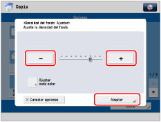 Pulse [-] y [+] para ajustar la densidad del fondo → pulse [Aceptar].