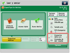 Puede guardar las teclas de acceso directo que se muestran en la pantalla Enviar. Puede guardar un máximo de dos botones desde [Opciones].