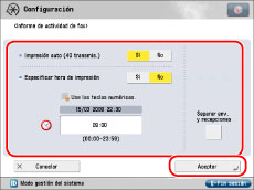 Para imprimir el informe a una hora concreta, pulse [Sí] → introduzca la hora con - (teclas numéricas).