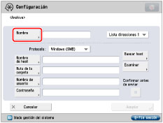 Si está activado [Cambio de idioma/teclado] en [Preferencias] (Configuración), puede que el nombre de host y la ruta de carpeta no se muestren correctamente, por lo que es posible que no pueda acceder a ellos.