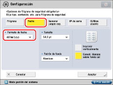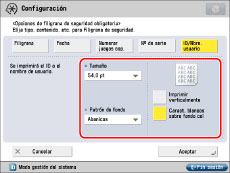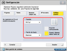 Si se establecen simultáneamente [Filigrana de seguridad controlador impresora] y [Filigrana de seguridad obligatoria] para una impresora, tendrá prioridad Filigrana de seguridad obligatoria.