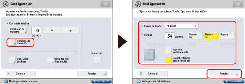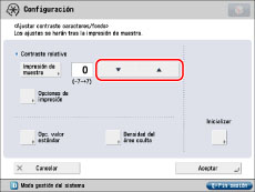 Cuando cambie el área de ajuste en la impresión de muestra para el contraste relativo, especifique las opciones para [Opc. valor estándar].