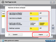 Cuando se lea un documento con información incrustada, el trabajo de lectura se iniciará aunque el documento tenga incrustada información de [Prohibir todo].