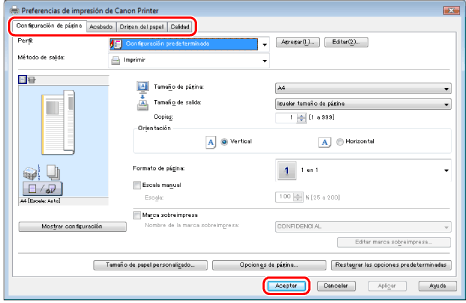 Para cambiar las opciones de impresión prefijadas, debe iniciar sesión en el ordenador como miembro del grupo de administradores.