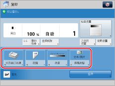 可以将模式注册到“复印”屏幕上显示的快捷键中。可以从[选项]和[常用设置]注册最多五个所需按钮。