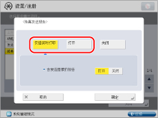 只有在“设置/注册”下[功能设置]中的[纸盒自动选择打开/关闭]中的[其他]中设置为“打开”的供纸器中添加A3、B4、A4或A4R纸张(普通纸、再生纸、薄纸或彩色纸),才能打印报告。但是,如果在[纸盒自动选择打开/关闭]中将[复印]的[确认纸张类型]设置为“打开”,则不能从指定了彩色纸的供纸器打印。 (请参阅“启用纸盒自动选择”)