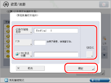 (数字键)为“保密传真收件箱”输入最多七位数的PIN。按[确认]→再次输入PIN以确认→按[确定]。可以不输入PIN。不能存储只含零的数字作为PIN,如<0000000>。|
