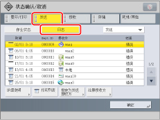 (状态确认/取消)→[发送]→[日志]确认文档的传送状态。如果文档已成功接收,将显示[完成];如果发送失败,将显示[错误];如果无法确认结果,将显示[--]。在“简单”模式中,禁用传送确认。即使传送已成功,也将显示[--]。![]() |