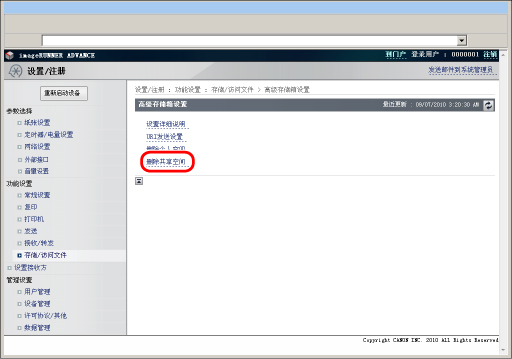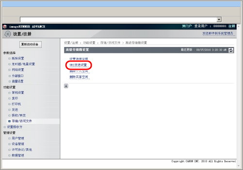 对于通过计算机或其他机器访问本机的用户,可以设置是否禁止这类用户创建文件夹或将文件存储到对外共享的“高级存储箱”。