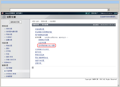 要安装证书吊销列表(CRL),必须以管理员身份登录。