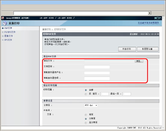 如果通过输入PDF文件的URL指定打印该文件,则此PDF文件下载完毕或浏览器从网络服务器断开连接之后,才能处理下一打印作业。