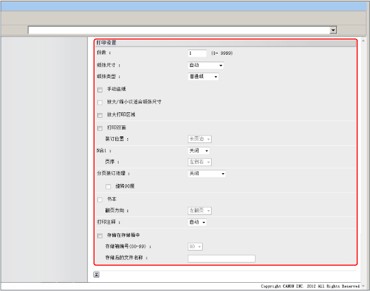 如果选择该复选框,可以在可打印区域内将所选纸张尺寸的长度和宽度以相同的倍率进行放大或缩小。但是如果在纸张尺寸中选择了[自动],该功能将不可用。