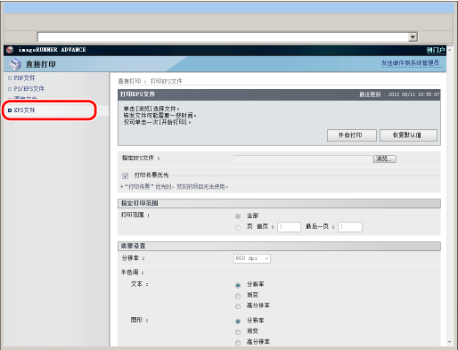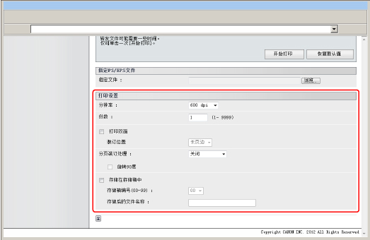 要从“远程用户界面”直接打印PS/EPS文件,必须启用“PS打印组件”。
