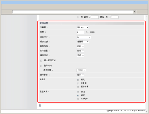 如果选择[自动],且又指定了图像的打印位置,会在纸张的指定位置打印图像。如果未指定打印位置,则在纸张中央位置打印。