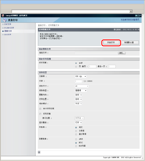 转发文件时,请勿反复单击[开始打印]。转发文件可能需要一些时间。但是,如果在转发时反复单击,文件可能会出现问题并且可能不会转发。