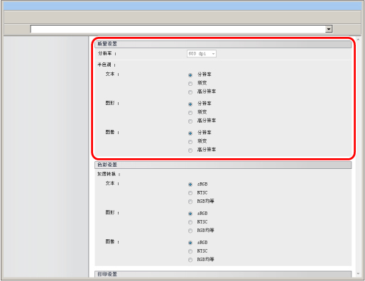 选择[分辨率],可以打印具有不同轮廓的文本,此设置最适于打印文本和细线条。