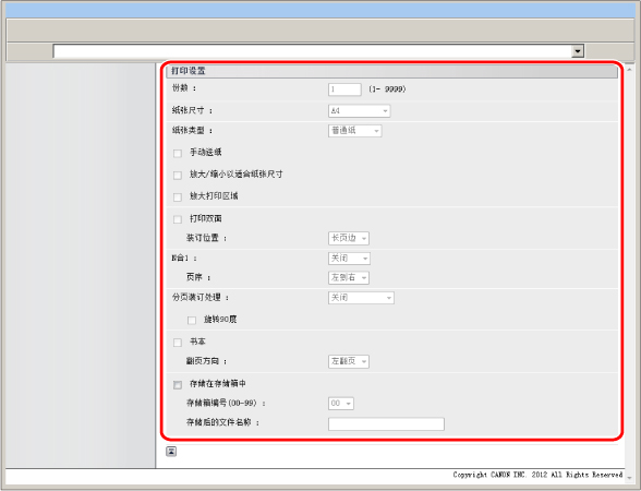 如果选择该复选框,可以在可打印区域内将所选纸张尺寸的长度和宽度以相同的倍率进行放大或缩小。但是如果在[纸张尺寸]中选择了[自动],该功能将不可用。