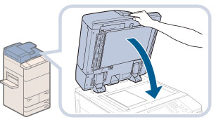 本机的输稿器上具有开启/关闭传感器(请参阅上图中的圆形区域)。将原稿放到稿台玻璃上时,请将输稿器抬起约300 mm以便传感器与输稿器分离。如果传感器未与输稿器分离,则可能无法正确检测原稿尺寸。