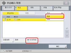 在“发送作业列表”上打印传真、电子邮件、互联网传真、文件服务器和存储箱发送列表。