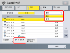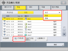 要打印“传真通信管理报告”的发送历史记录,在下拉列表中选择[传真]。(请参阅“传真发送/接收通信管理报告”)