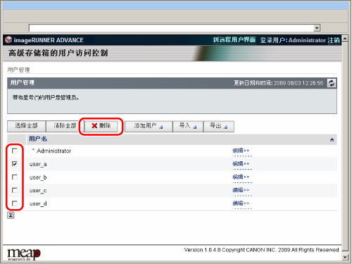 不能删除以“高级存储箱”管理员身份登录的用户的用户信息。