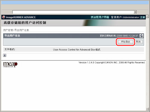 备份“高级存储箱”中的数据以在其他imageRUNNER ADVANCE系列机器上使用时导出用户信息。如果将用户信息导入其他机器,则可以使用“高级存储箱”中存储的数据。有关备份/恢复已存储数据的信息,请参阅“备份已存储数据”。