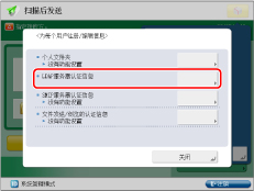 可以在[扫描后发送]“基本功能”屏幕、[传真]“基本功能”屏幕、[存取已存储文件]“发送”屏幕和[传真/互联网传真收件箱]“发送”屏幕上的[