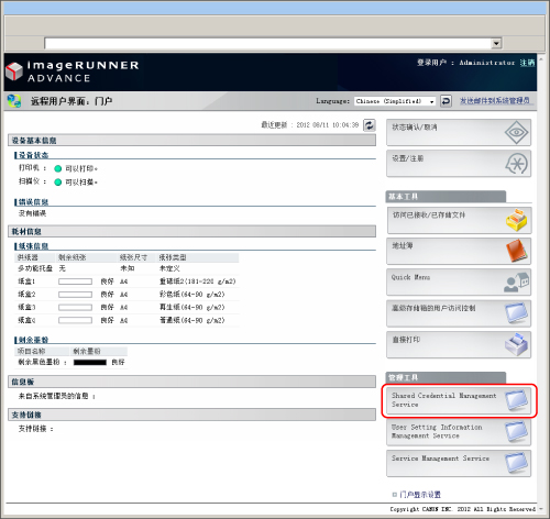 有关正在使用的登录服务或其他服务是否支持Integrated Authentication的信息,请联系当地的授权Canon经销商。