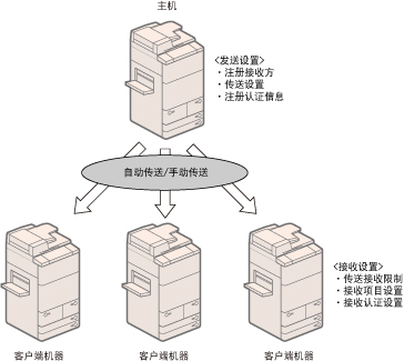 如果主机机器安装了“复印读卡器-F1”而客户端机器没有安装(或反之),则仅传送“系统管理员设置”。