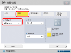 有关输入字符的说明,请参阅“从触摸面板显示屏幕输入字符”。如果已经在“设置/注册”的[功能设置]的[注册页码编排/水印字符]中注册了字符,则可以从列表选择字符。