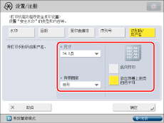 如果要从打印机驱动程序对每项作业使用“安全水印”功能,在[打印首选项]对话框上,单击[完成方式]选项卡→[高级设置]→为[设备的保密打印功能]选择[打开]。有关详细信息,请参阅打印机驱动程序的在线帮助。