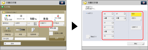 按[扫描尺寸]→选择扫描尺寸。