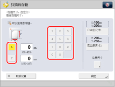按[X]或[Y]→输入以mm为单位的扫描尺寸。