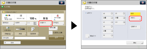 按[扫描尺寸]→[自定义]。