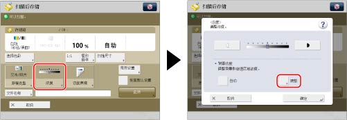 如果通过按<背景浓度>的[调整]调整背景浓度,则会取消[自动]设置。同样地,如果在[调整]中进行手动调整时按[自动],则会取消所做的调整。本机会自动将浓度调整到适合背景的水平。
