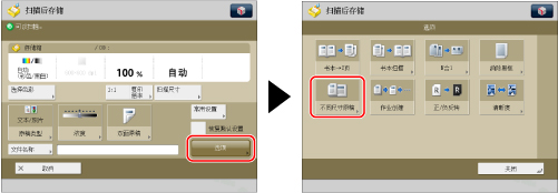 如果“扫描尺寸”设置没有设置为[自动],则以指定尺寸扫描所有原稿。如果要以原稿尺寸扫描每份原稿,确保将“扫描尺寸”设置为[自动]。