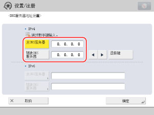 (设置/注册)→[参数选择]→[网络]→[TCP/IP设置]→[DNS设置]→[DNS服务器地址设置]。