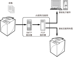 (设置/注册)→[功能设置]→[发送]→[电子邮件/互联网传真设置]→[使用“通过服务器发送”]。